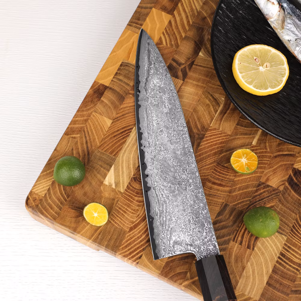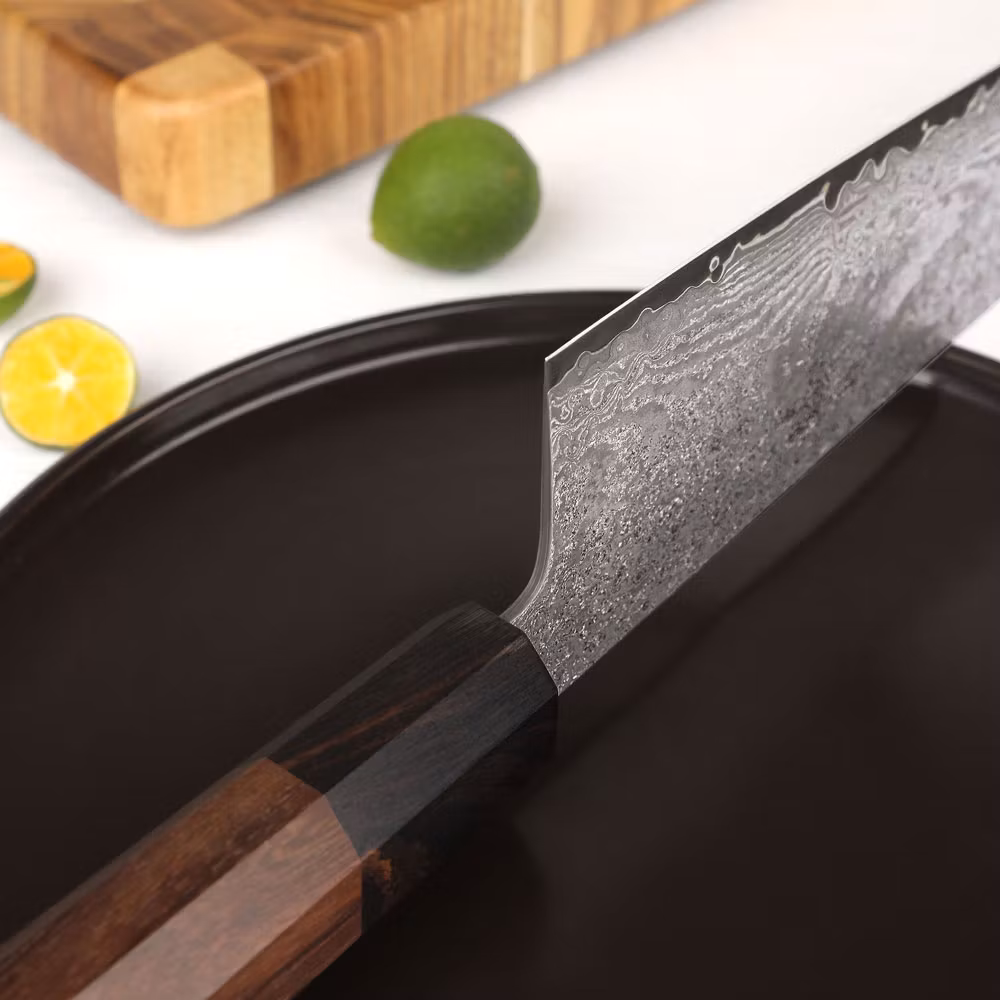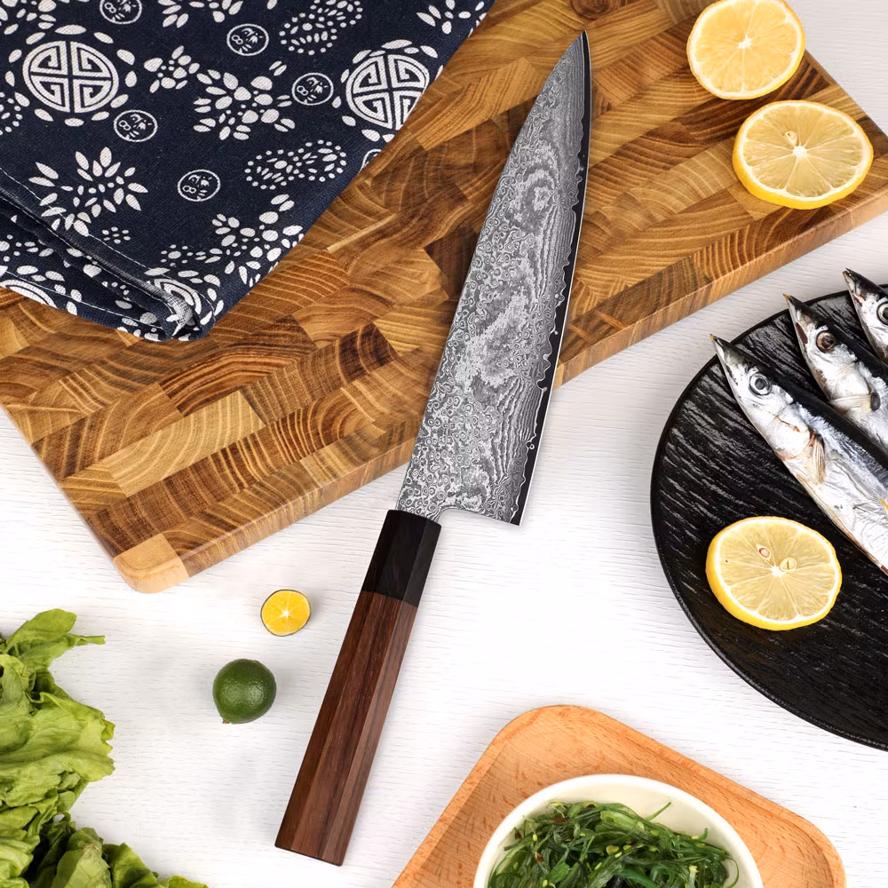 Gyuto med 67 Lagers Damascus och S35VN KärnaUpplev enastående mångsidighet och skärpa med vår gyuto, skapad för att uppfylla alla dina köksbehov. Med 67 lager d
