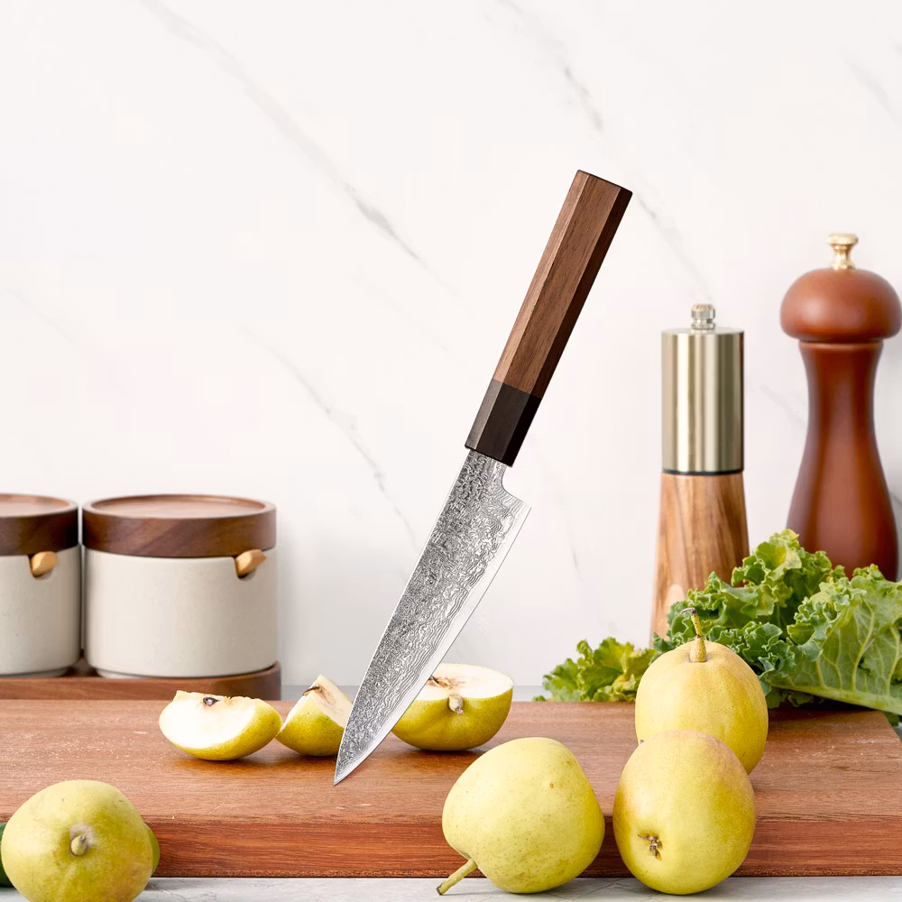 Utility Allkniv med 67 Lagers Damascus och 10Cr15CoMoV StålUpptäck mångsidigheten och skärpan hos vår Utility Allkniv, perfekt för alla dina köksbehov. Med 67 l