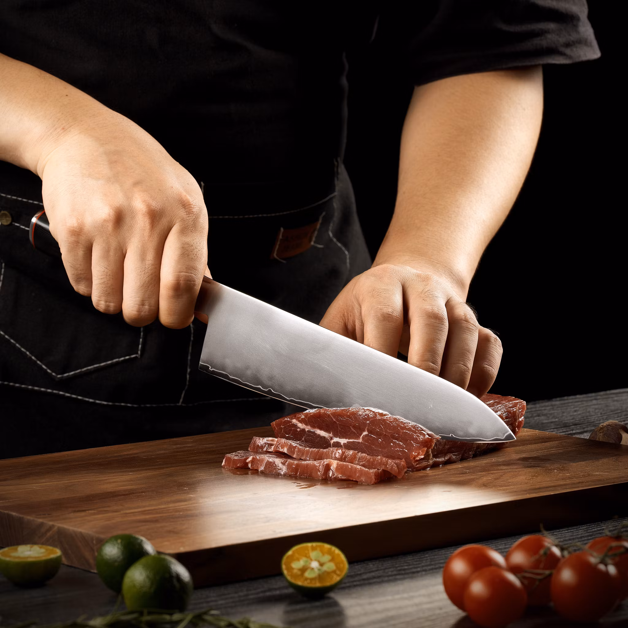 Handtaget är tillverkat av G10, vilket ger både stil och ett bekvämt grepp. Perfekt för professionella kockar och hemmakockar som söker högsta kvalitet och prestanda i sina specialverktyg.