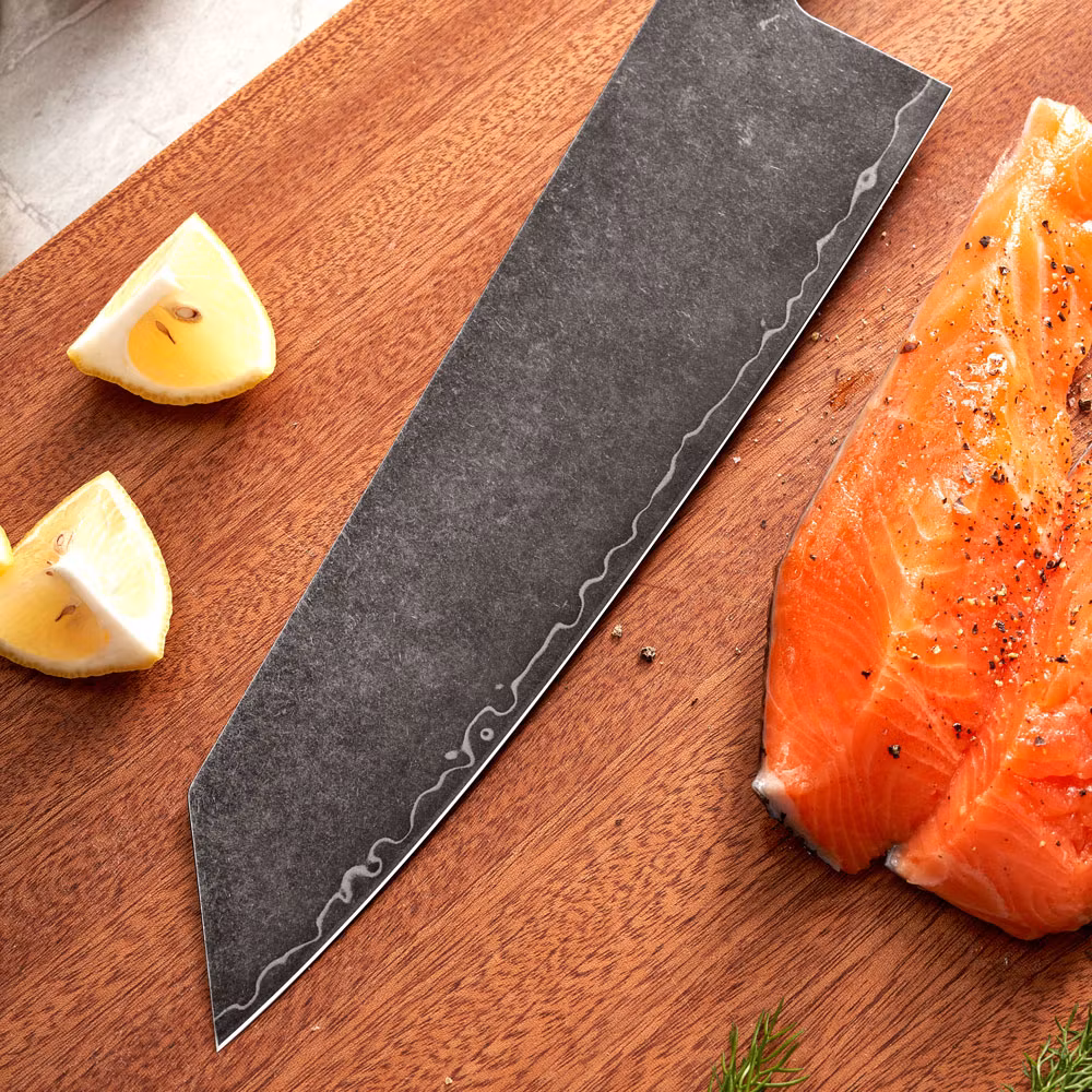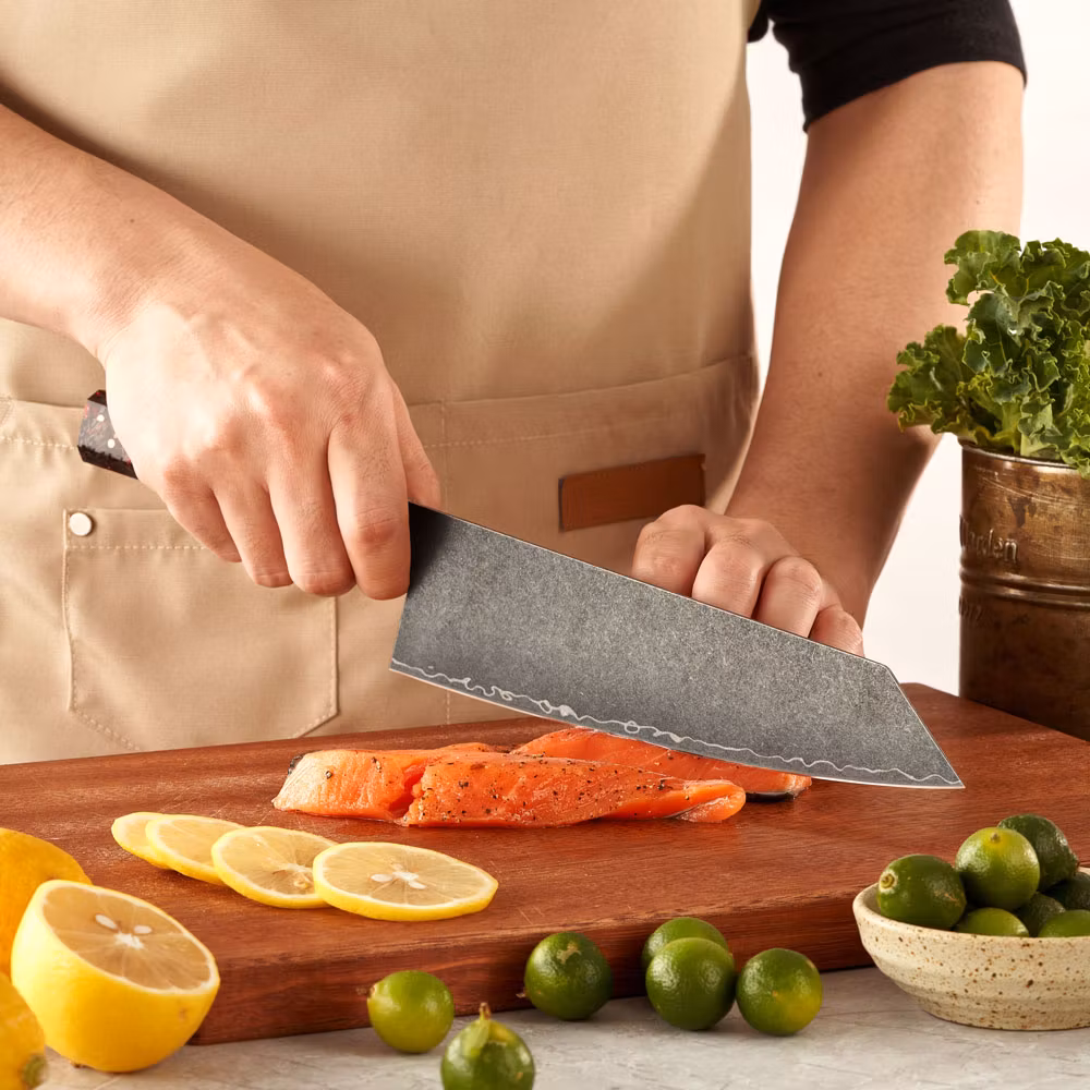 Upplev den perfekta kombinationen av mångsidighet och skärpa med vår Kiritsuke, designad för att fixa allt i köket. Denna kniv är konstruerad med 3 lager stål och en kärna av VG10 stål, vilket ger både hållbarhet och precision.