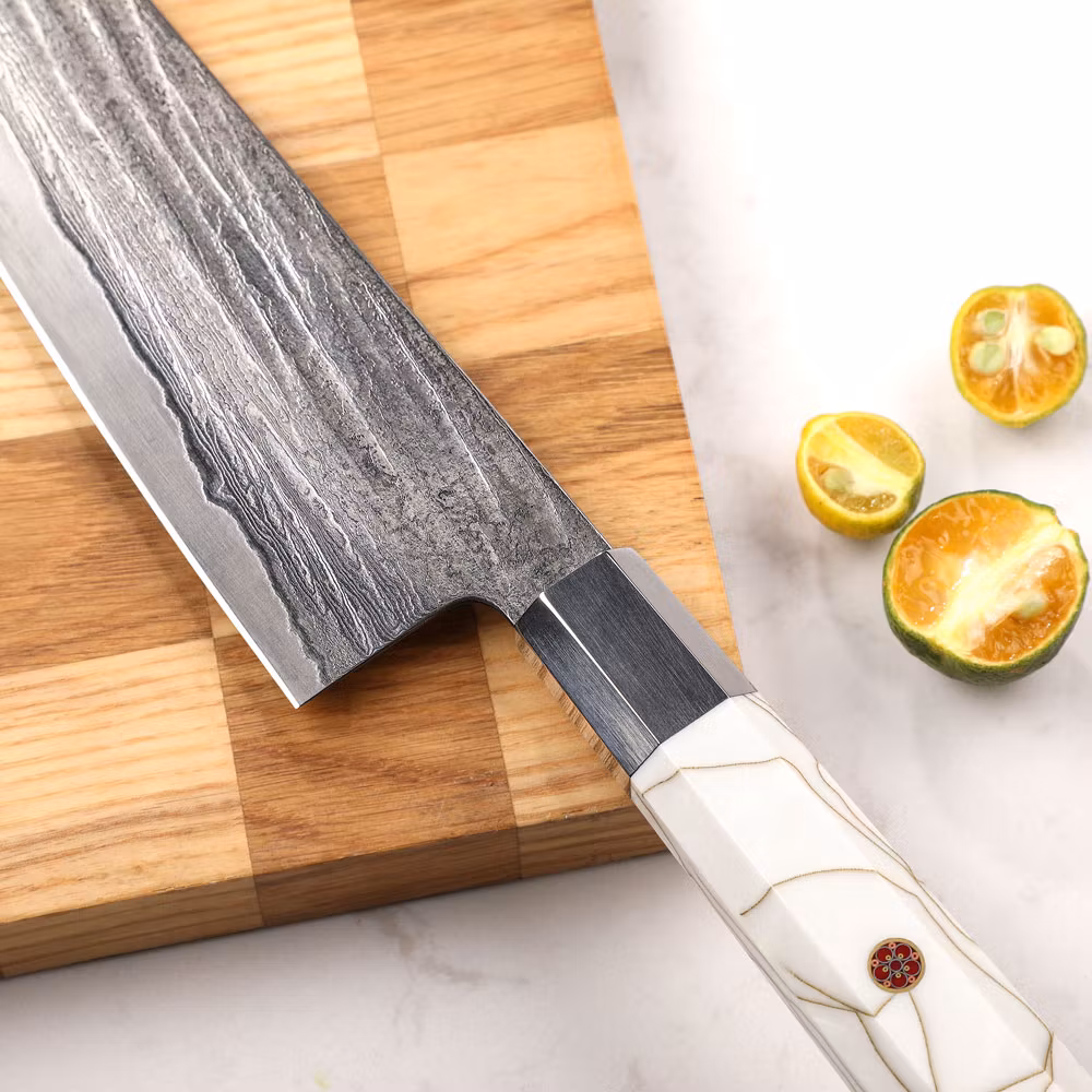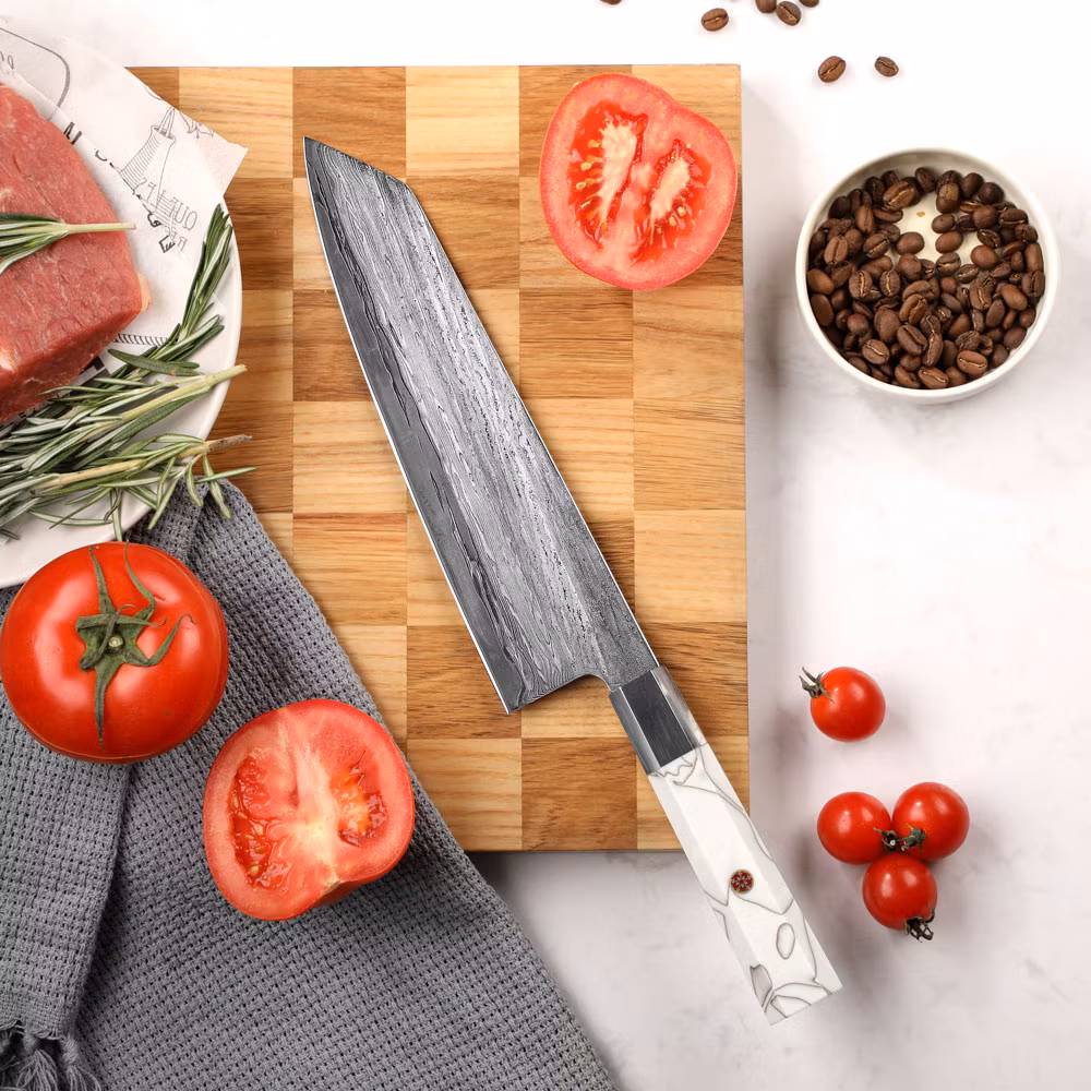 Kiritsuke med 67 Lagers Damascus och VG10 KärnaUpplev enastående mångsidighet och skärpa med vår Kiritsuke, skapad för att uppfylla alla dina köksbehov. Med 67