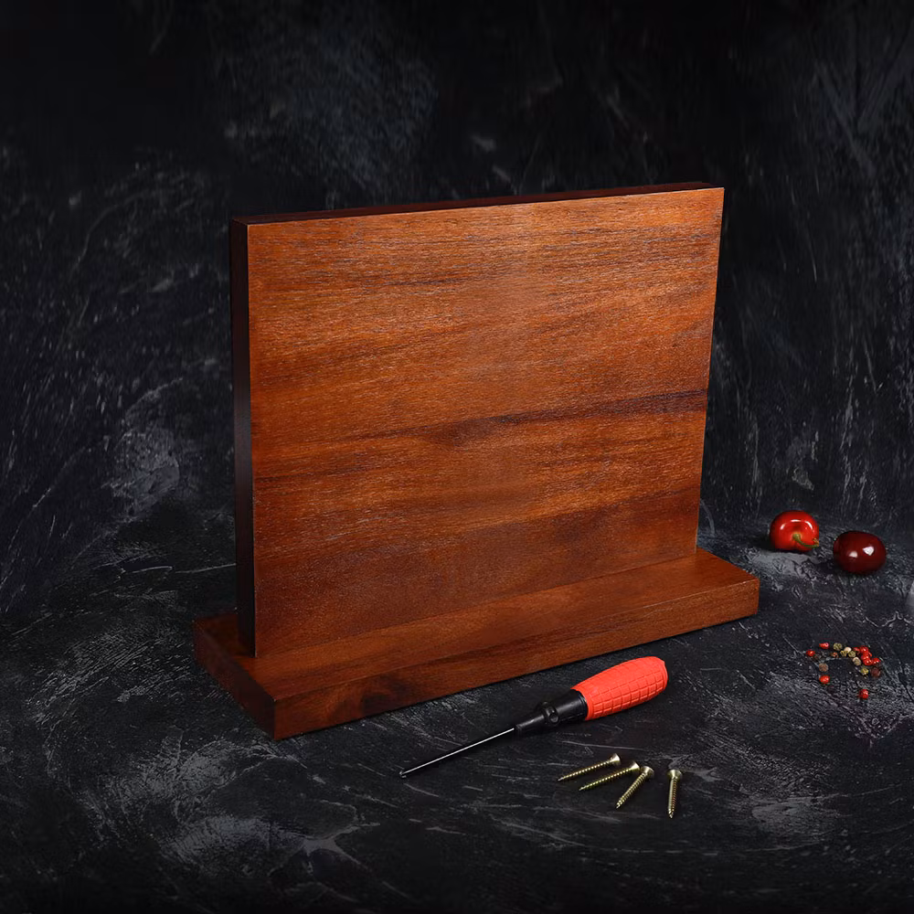 Knivställ magnetiskt i AkaciaträMycket fint knivställ med inbyggd osynlig kraftig magnet. knivar kan fästas båda sidor pga den starka magneten. Den rymmer cirka