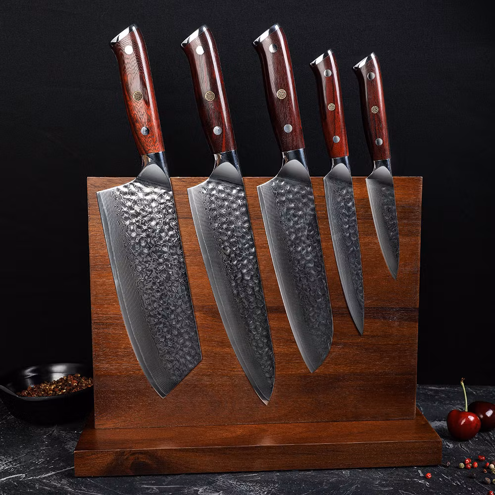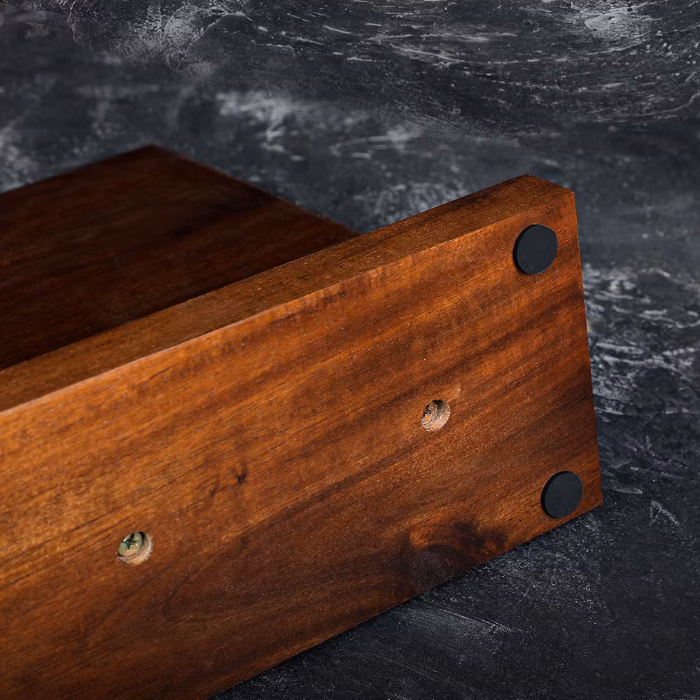 Underbart fint knivställ som underlättar vardagen och gör det enkelt att nå knivarna från arbetsplatsen. Tillverkat i fint Akaciaträ som är mycket motståndskraftigt mot fukt och fungerar därmed perfekt för endamålet. Gummerade fötter så den står stadig utan att repa ytan.