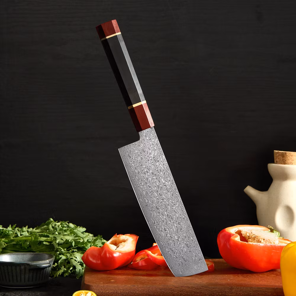 Nakiri med 110 lagers Damascus av 10Cr15CoMoV och 9cr18MoV