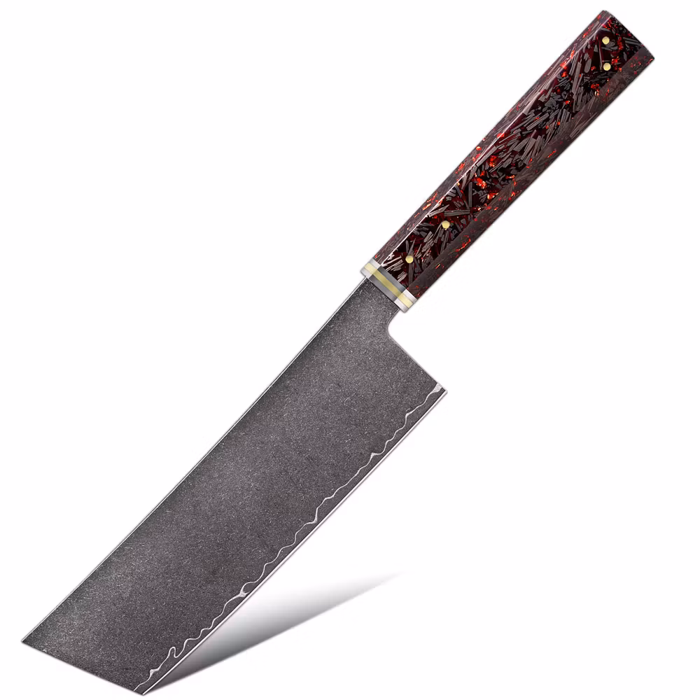 NAKIRI med 3 Lagers Stål och VG10 KärnaUpplev den perfekta kombinationen av mångsidighet och skärpa med vår Nakiri, designad för att hacka och tärna, en ri