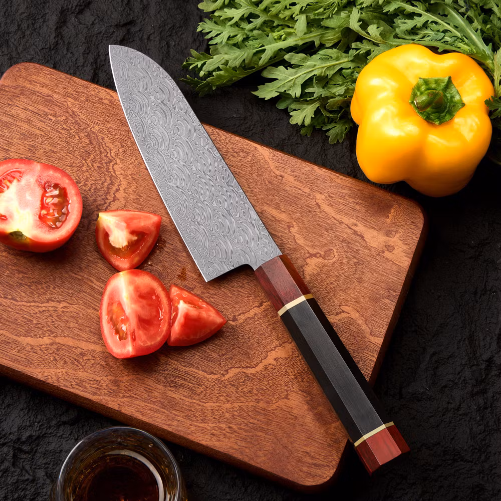 Santoku med 110 lagers Damascus av 10Cr15CoMoV och 9cr18MoV