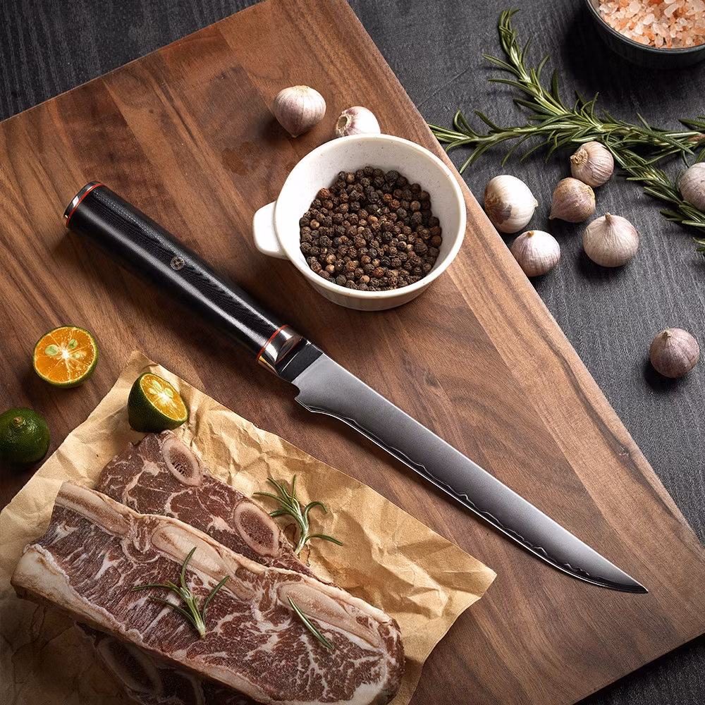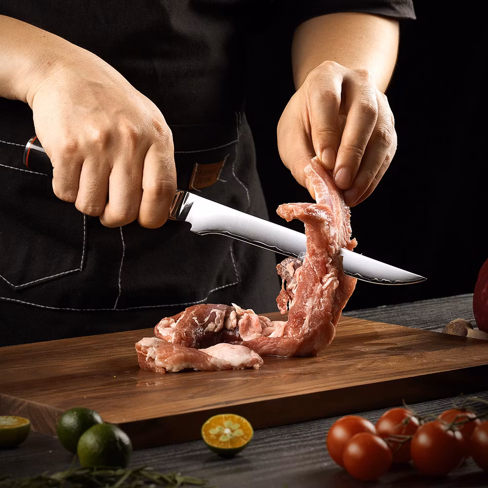 Upplev precision och skärpa med vår urbeningskniv, designad för att möta specifika köksbehov. Denna kniv är konstruerad med 3 lager stål och en kärna av VG10-st