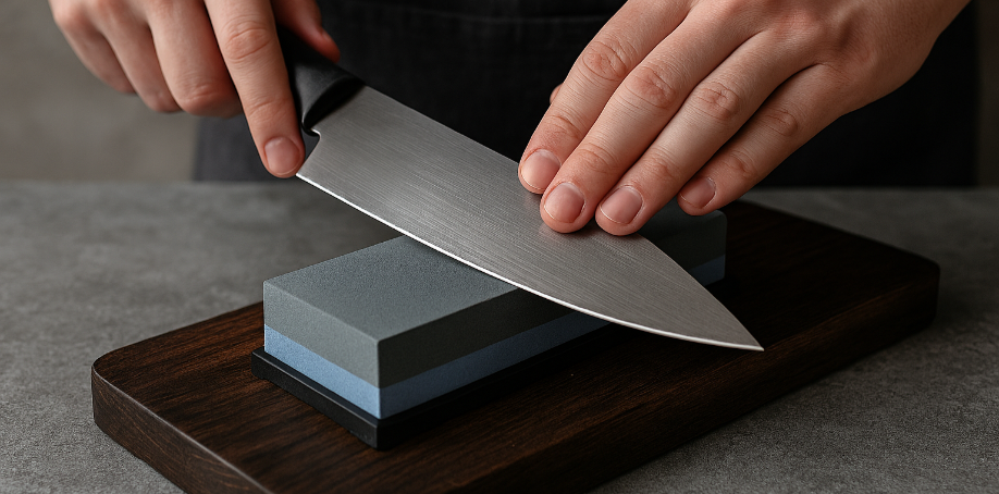 Genom att regelbundet slipa dina knivar: